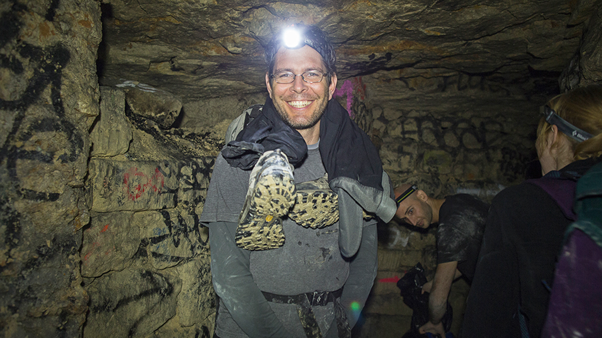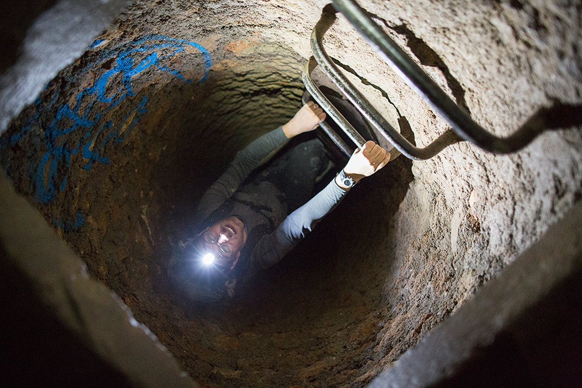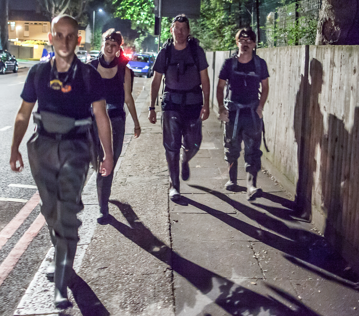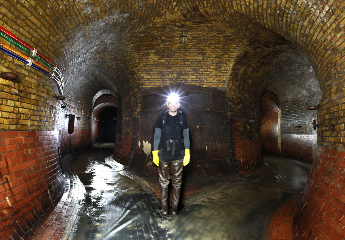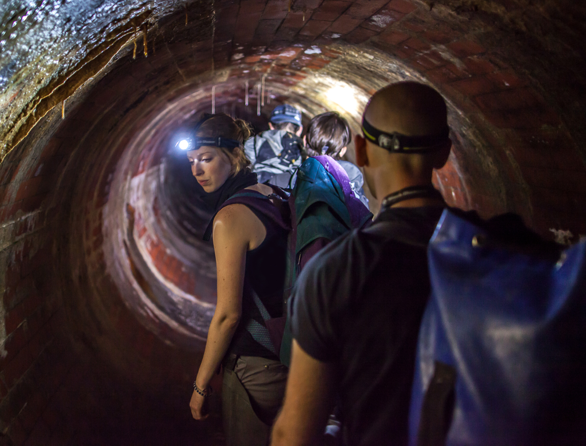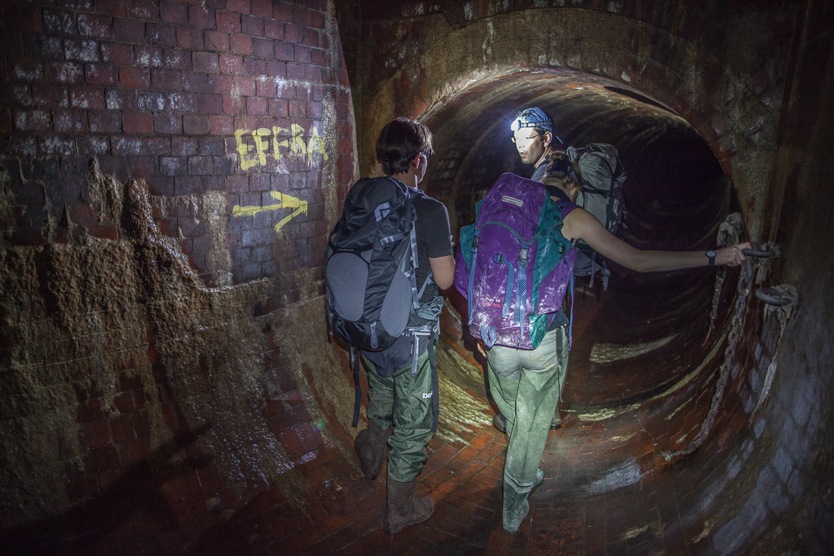 The first thing we wanted to attempt was to cross London from South to North through the sewers. We popped a lid in Dulwich and sent Matt down. He absolutely hated the sewers and complained pretty steadily for four hours or so, at which point we realised we were totally lost. We ended up in a particularly heinous dead end in the River Effra where an angular ceiling came into contact with a slopping mass of grey sludge. Rain runoff and rising water levels pushed air bubbles from this stinking goo, which were popped by the pressure against the grade. The ruptured bubbles echoed through the chamber, followed by a foul-smelling waft. Matt dubbed the place The Bog of Eternal Stench and begged to leave. Marc Explo pulled me aside and whispered, “Brad this is awesome, we’re going to break the great adventurer Matthew Power on our expedition”. We could ask for nothing more. When we finally popped open the sewer lid and climbed back into fresh air, Matt pulled out his phone to locate us and realised that we had miraculously exited the sewers, after four hours of walking, mostly lost, five minutes from my flat. He laughed and said, “I’m starting to think the world bends around you guys, I’m so glad I’m here!”